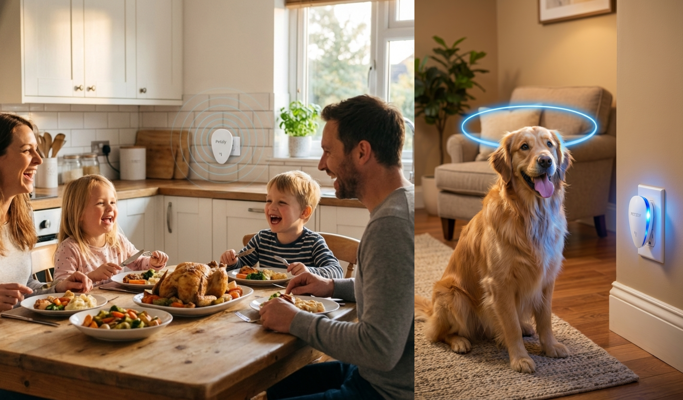 Petzly works silently, 24 hours a day, every day it's plugged in. No residue on floors. No toxic smell. No risk to your children, your pets, or your peace of mind. Just plug it in and forget about it.